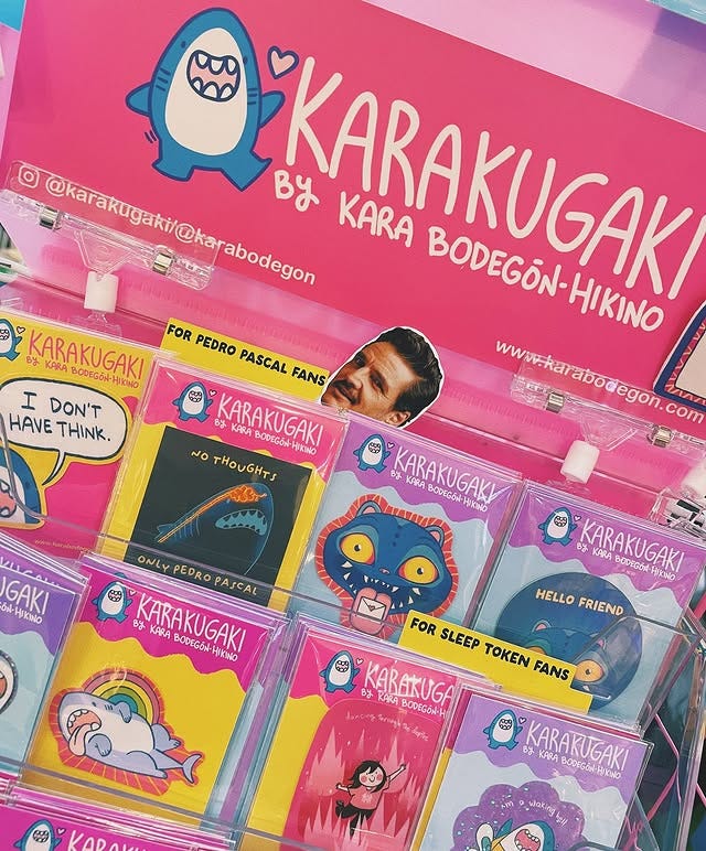 There was a little bit (read: a lot lot lot lot) of anxiety that reared its ugly head, since the table next to mine was extremely popular and drew in huge crowds for their anime fan art. It’s hard not to compare yourself to these seasoned merchants (especially since they’re younger), but I tried my best to look past it. I ended up learning a lot from them and in those four days, also turned my neighbors into friends. We all had a shared love for Pedro Pascal and traded stickers and secrets. I honestly couldn’t have asked for better tablemates (Ric, Gaegan, and Cat! You guys are the best!).