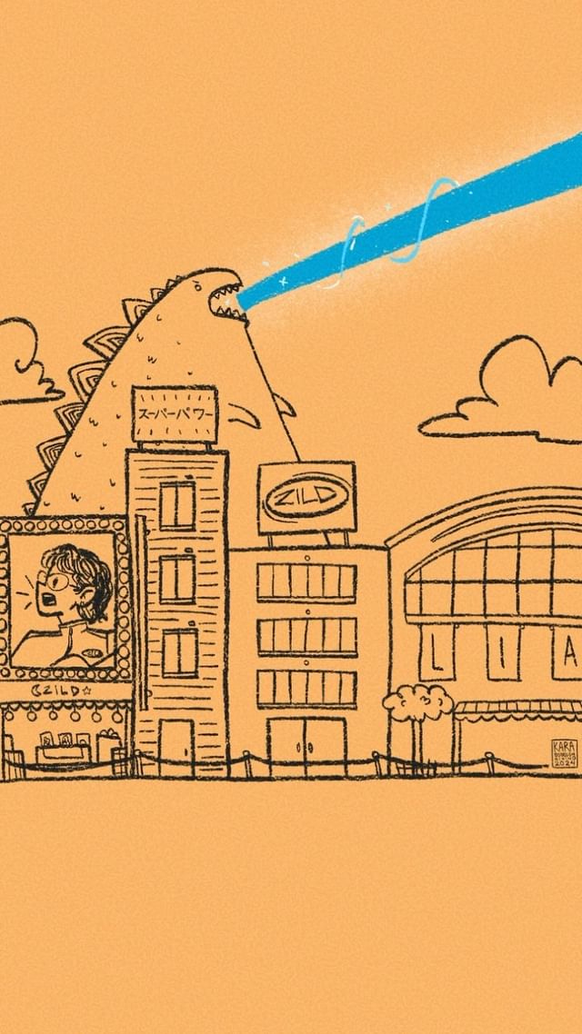 I’m actually not so sure how I ended up thinking about drawing Godzilla. I don’t know how I landed there, but whatever it was, it gave birth to one of my favorite illustrations last week. Maybe it was because we’d just booked our trip to Tokyo for Christmas. We’re all sooo excited! Can’t wait to listen to “Lia” there and see if it hits different.